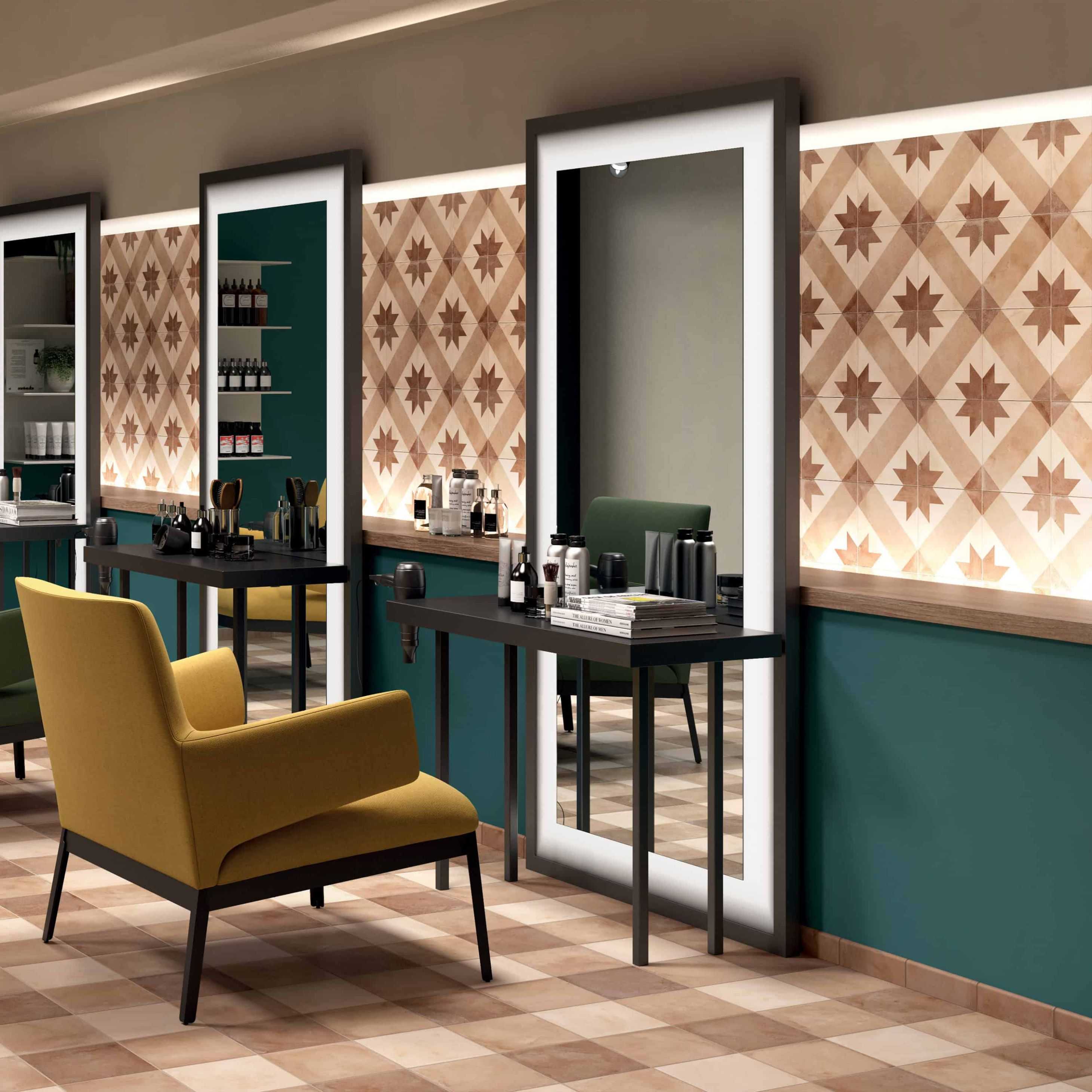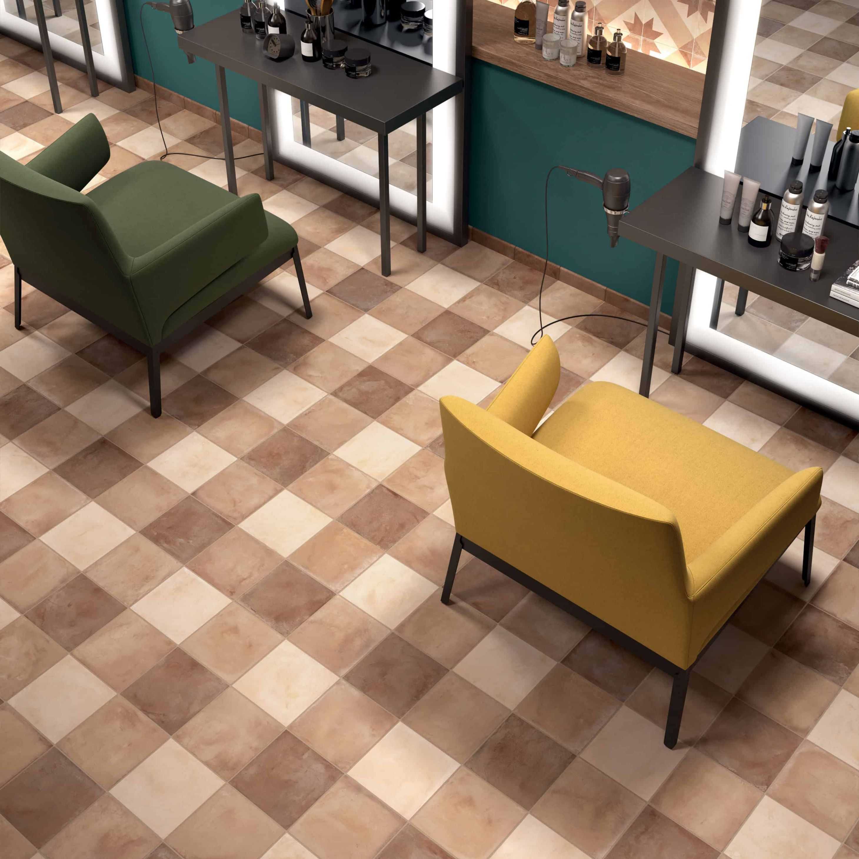 Terra est éclectique : tout le monde y trouve son compte. Ses formes géométriques rappelant le patchwork peuvent transformer des espaces sans intérêt en pièces élégantes et fascinantes, tandis que ses couleurs unies, rappelant la terracotta, peuvent facilement être intégrées à une pièce plus douce et monochrome.
