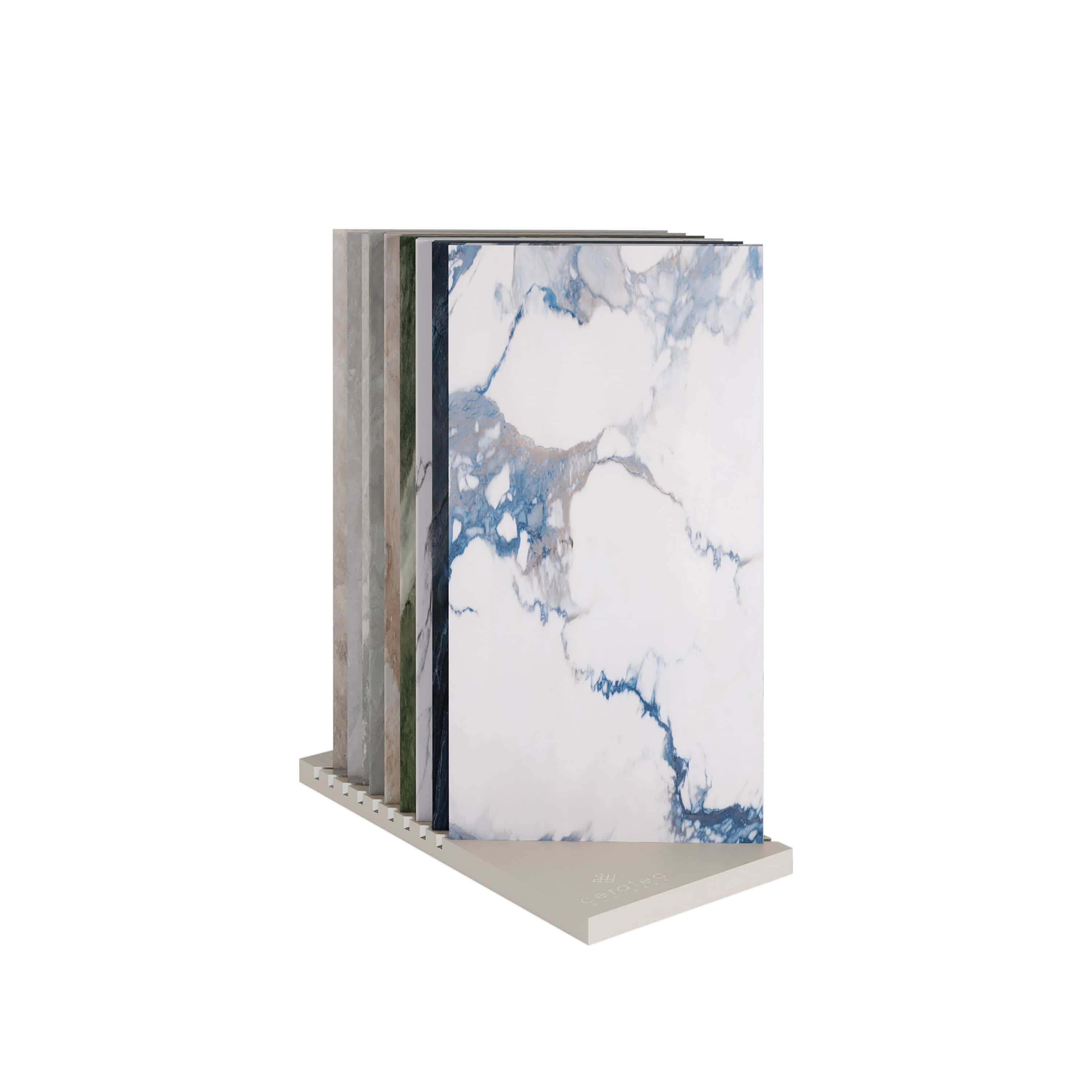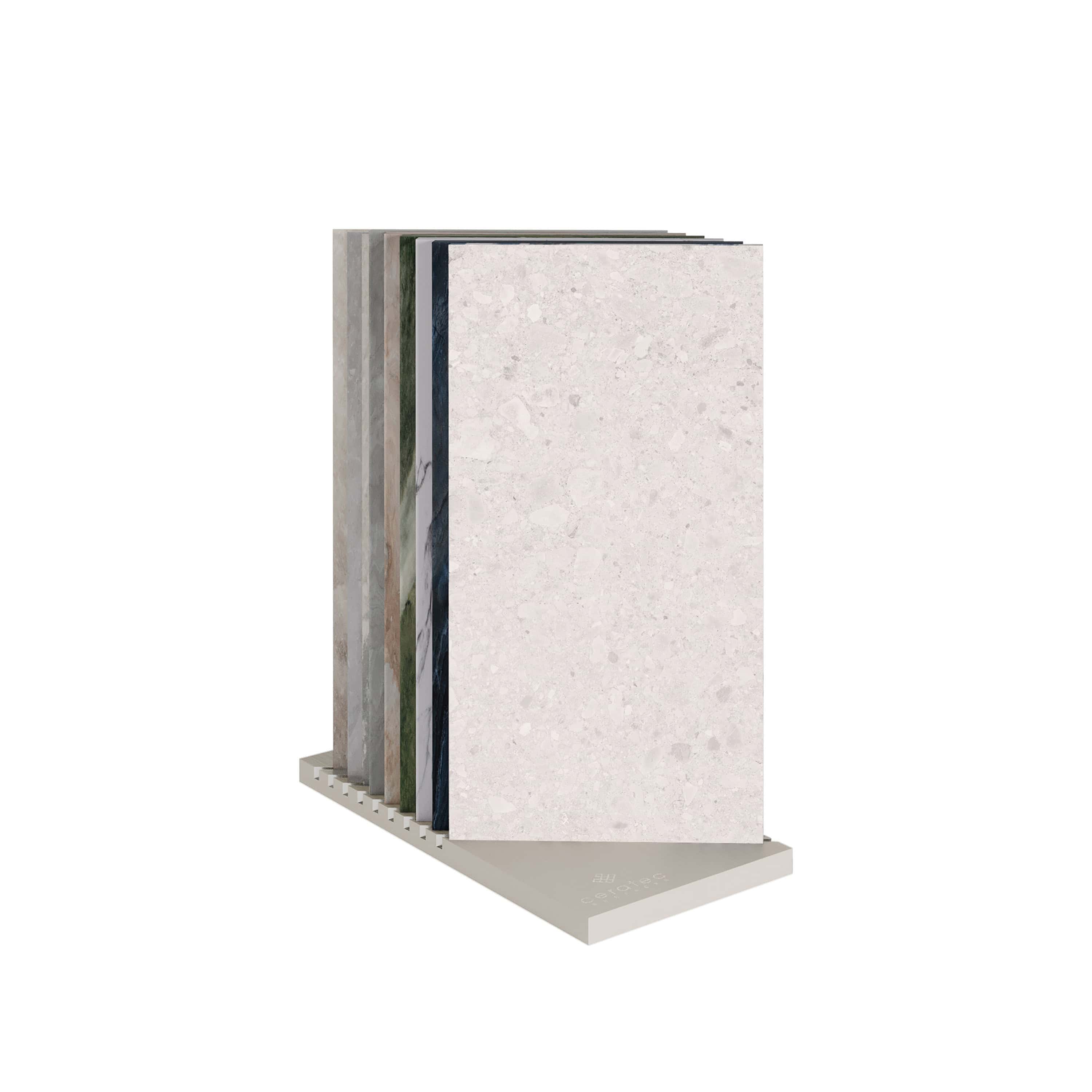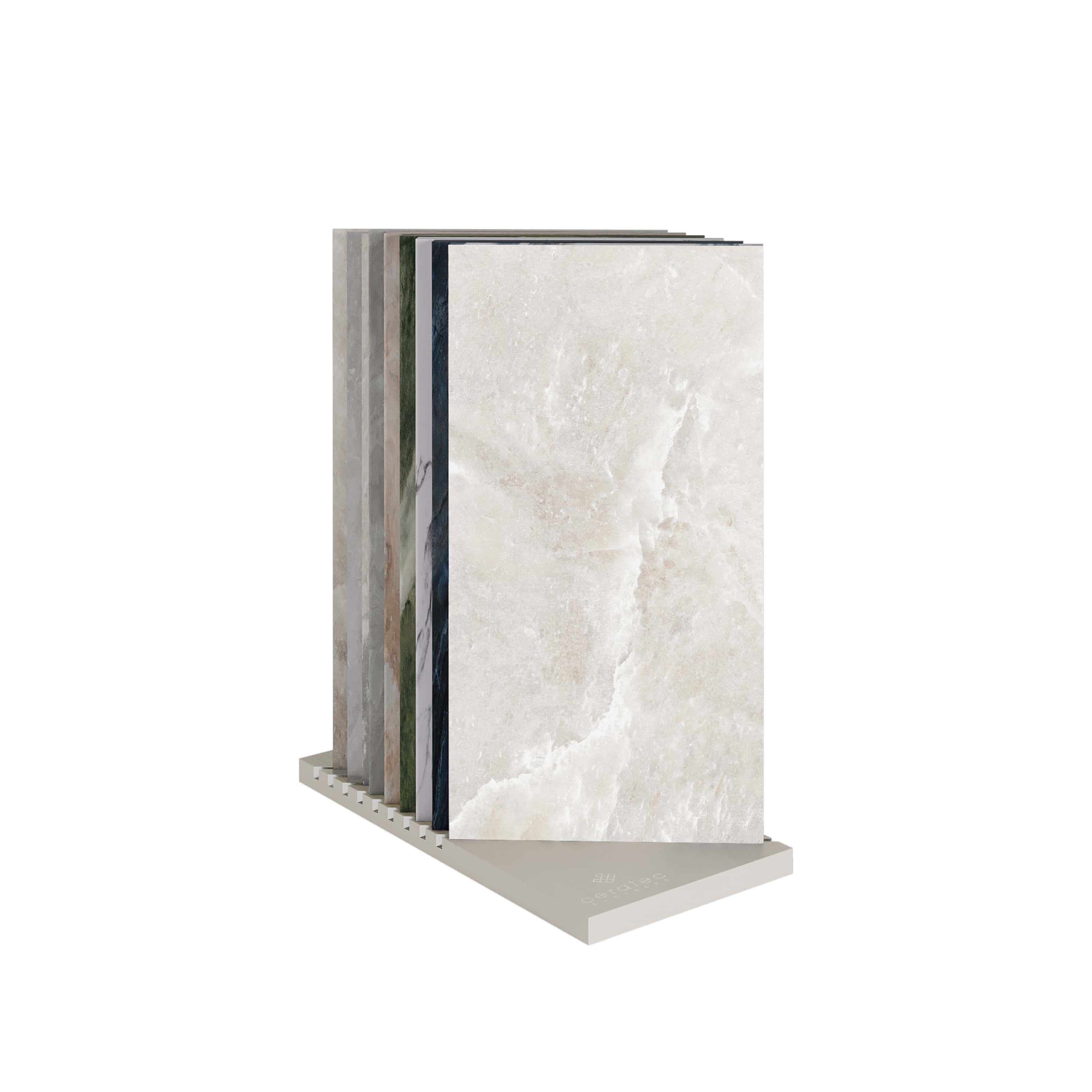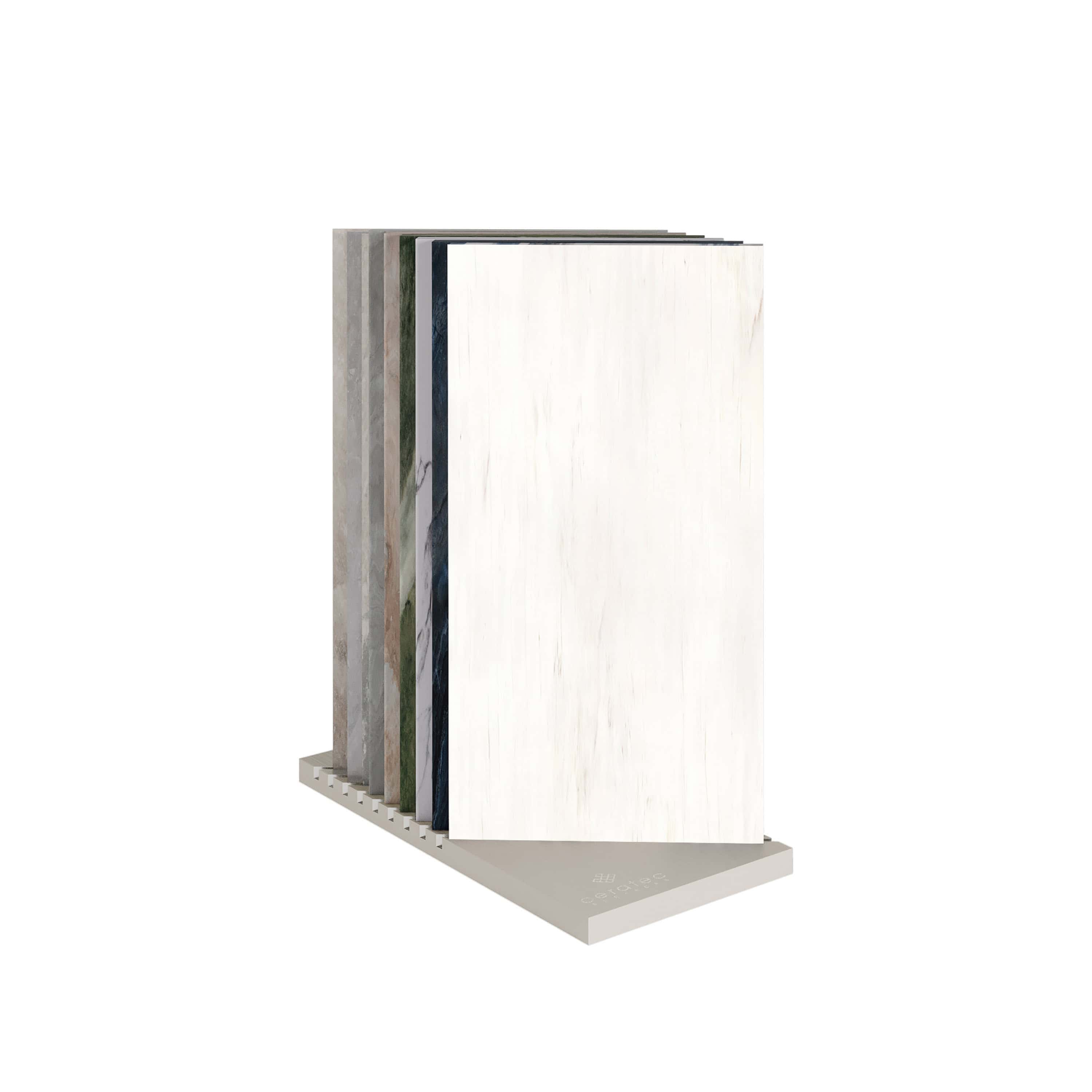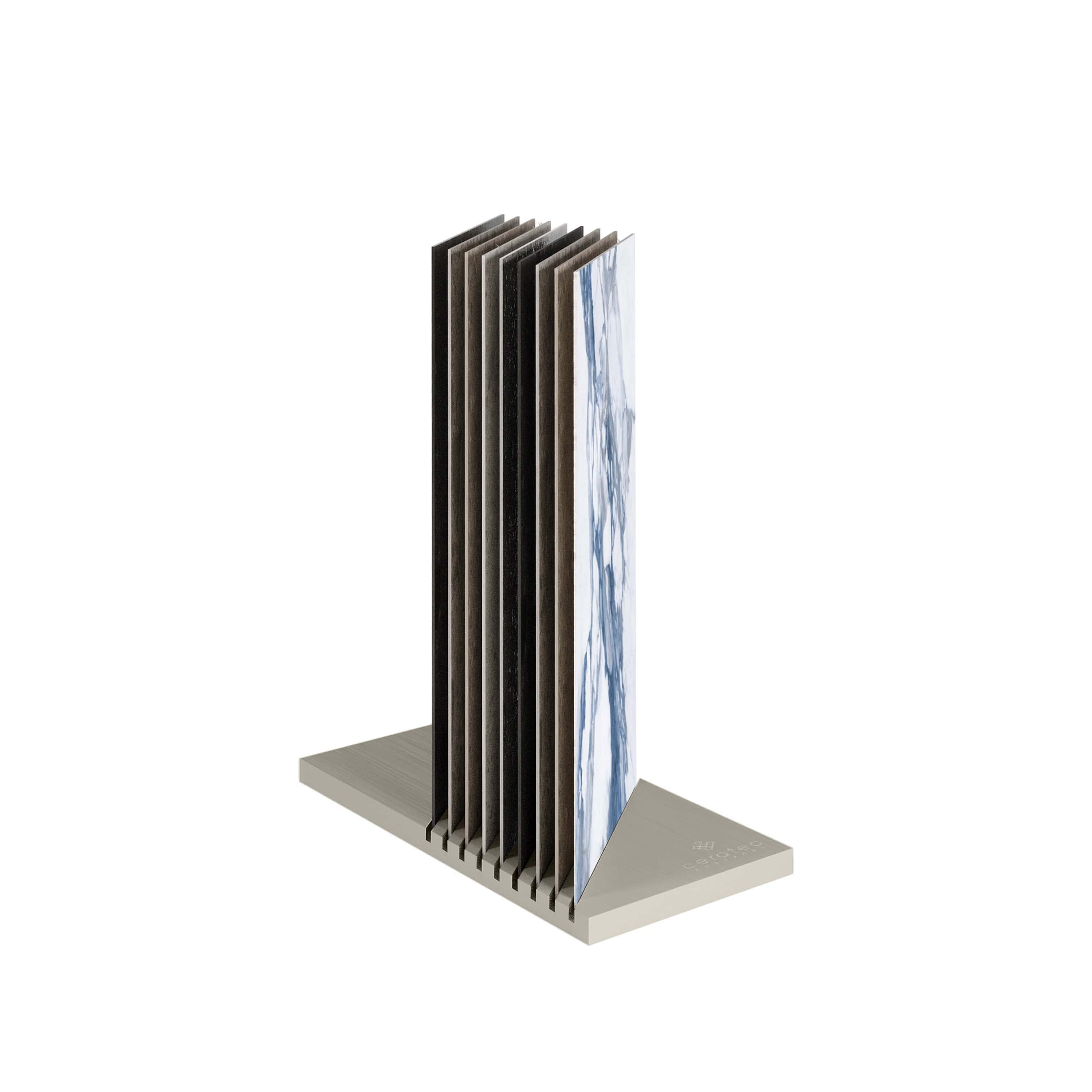 Les présentoirs haut de gamme Dune, Belvédère et Galerie sont de véritables pièces architecturales. Composées de quatre bases comportant 8 tuiles chacune, ces présentoirs permettent d’apprécier les couleurs et les textures des tuiles afin de créer un espace à votre image.